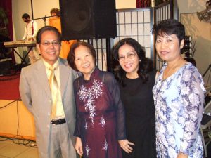 Nhà văn hóa Quốc-Nam bên Cố nữ sĩ Minh Đức Hoài Trinh trong cuộc hội ngộ các Nữ văn nghệ sĩ và một số Ca Sĩ Giải Quốc Tế Tượng Vàng VN tại Hội Trường nhật báo Người Việt năm 2006. Hình từ trai qua phải: Quốc Nam, Minh Đức Hoai Trinh, thi nhạc sĩ Miên Du Dalat & nữ tác giả Phong Thu (đến từ Thủ đô Washington D.C.)